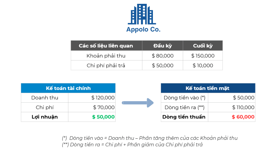 Áp dụng phương pháp Kế toán tiền mặt thay cho Kế toán Tài chính nhằm xác định dòng tiền thực tế vào – ra