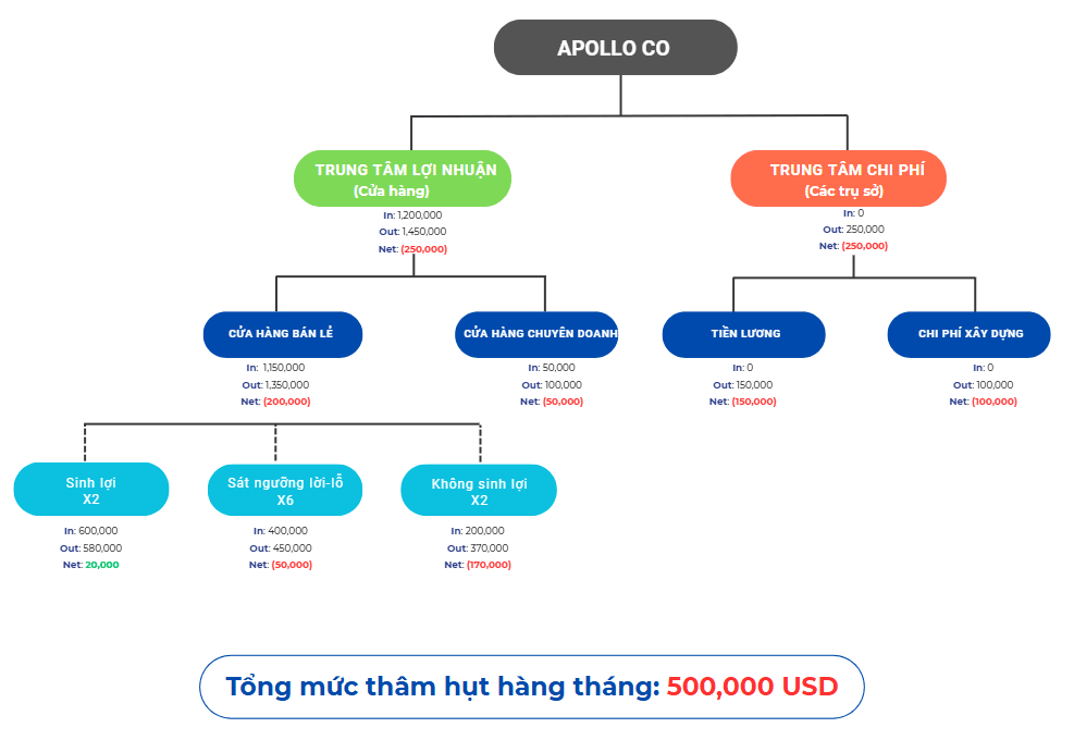 Tổng hợp dòng tiền vào và ra thuần của từng Trung tâm Lợi nhuận và Trung tâm Chi phí để xác định mức thâm hụt dòng tiền của công ty
